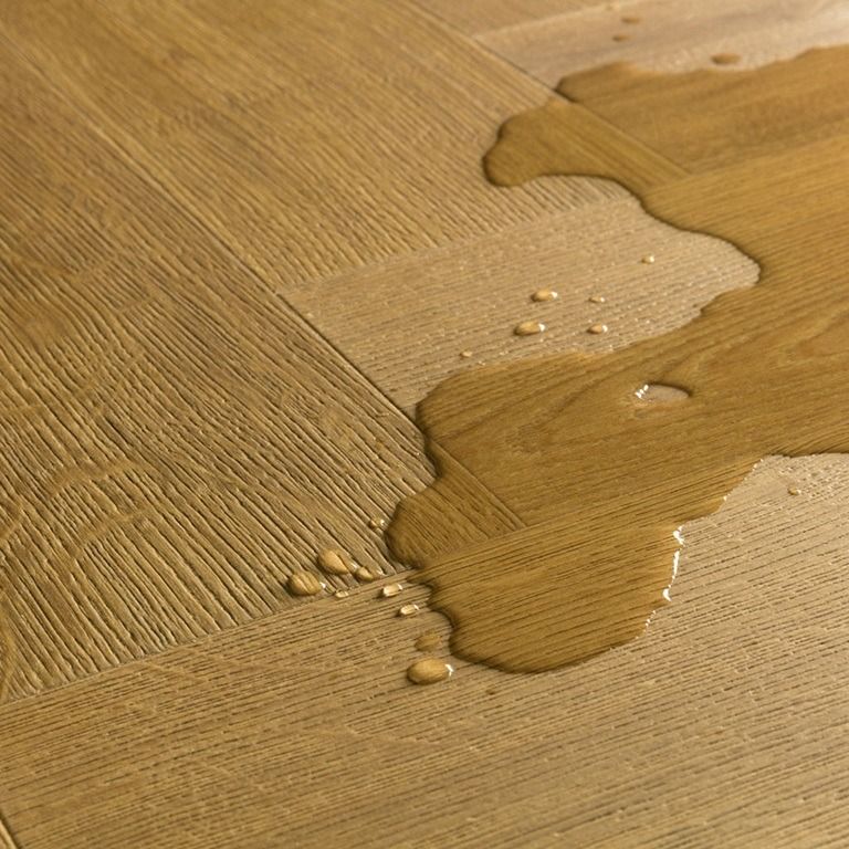 HydroSeal технологијата на Quick Step подовите им обезбедува 100% површинска водоотпорност.